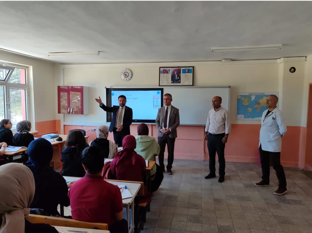 İhsaniye İlçe Millî Eğitim Müdürümüz Sayın Arif KAVAS ve Şube Müdürümüz Sayın Turğut YILDIRIM okulumuzu ziyaret ederek öğrencilerimizle bir araya geldi. Onların düşüncelerini dinledi, eksiklerimizi yerinde inceledi. Ardından öğretmenlerimizle samimi bir sohbet gerçekleştirdi.